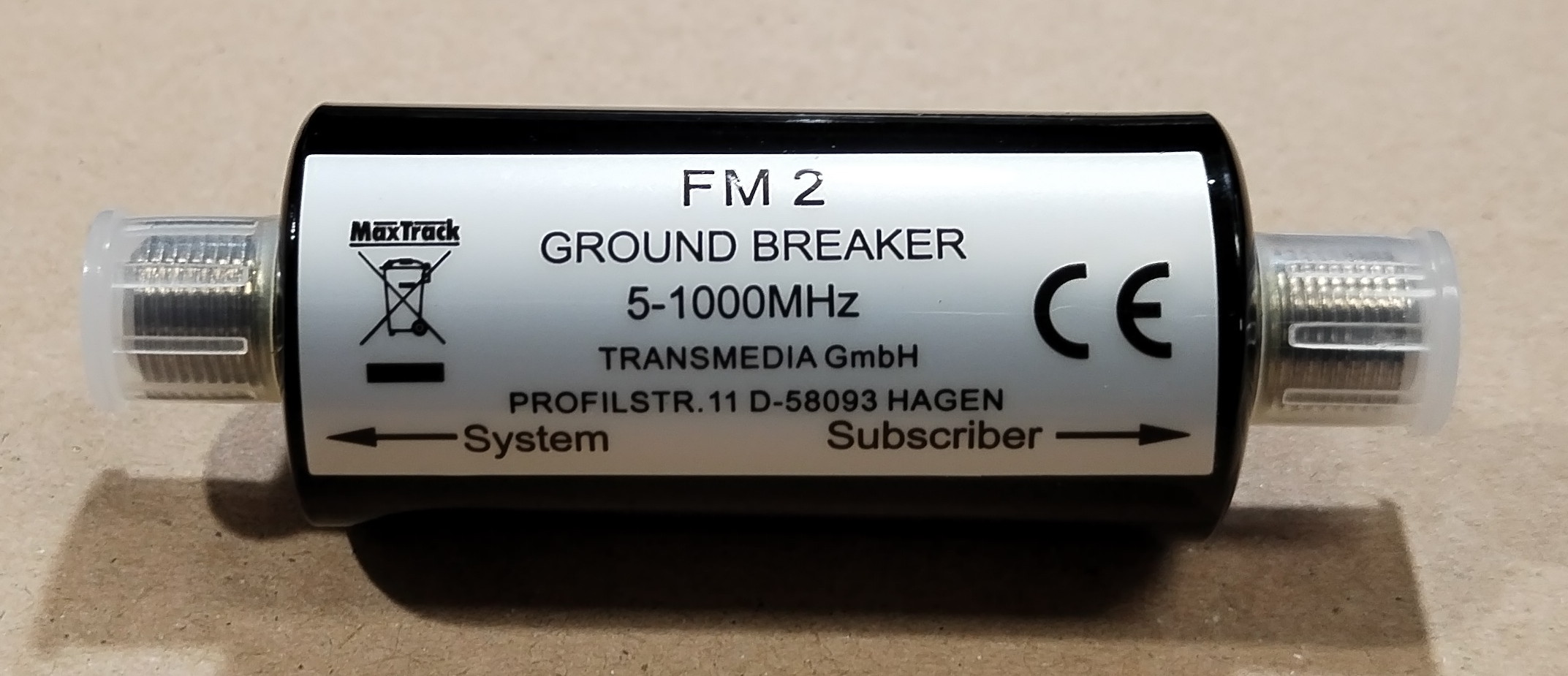 Földhurok leválasztó antenna hálózatokhoz, 5-1000Mhz, 2db F aljzat.