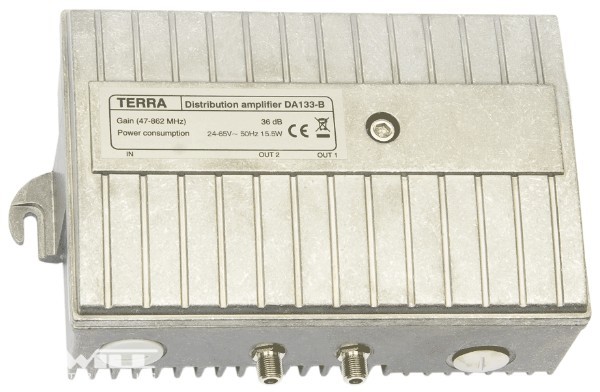 Univerzális erősítő, cserélhető JXP modulos lehetőség, vízmentes kivitel, 47/75/87-862MHz, 36dB szabályozható, 111dBuV, PG11/F csatlakozó, 5-30/55/65MHz visszirány, 24-65VAC.