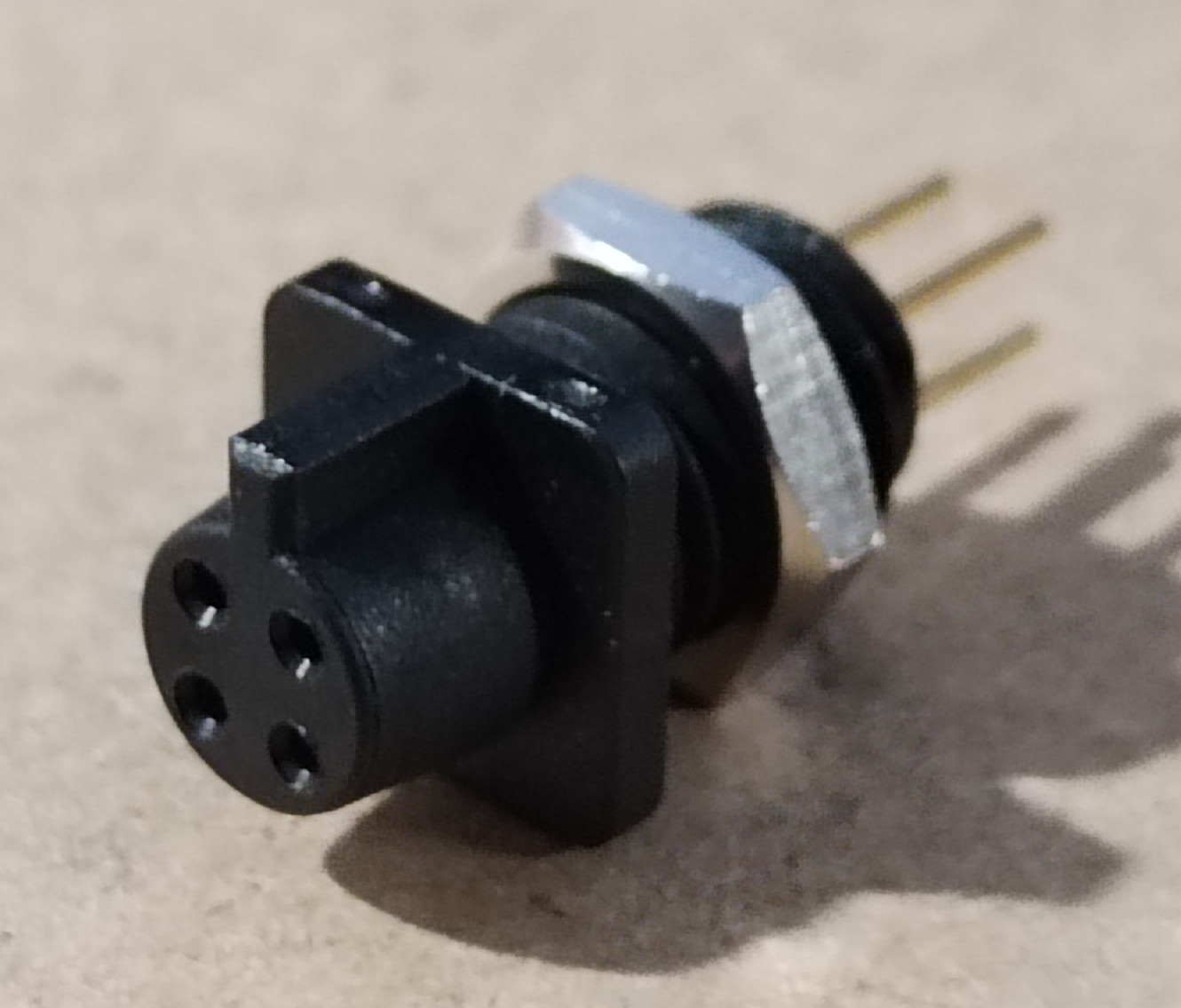 09-9766-20-04, 4 pólusú fix anya csatlakozó, 60V, 3A, IP40, aranyozott érintkezők, nyákba ültethető kivitel.