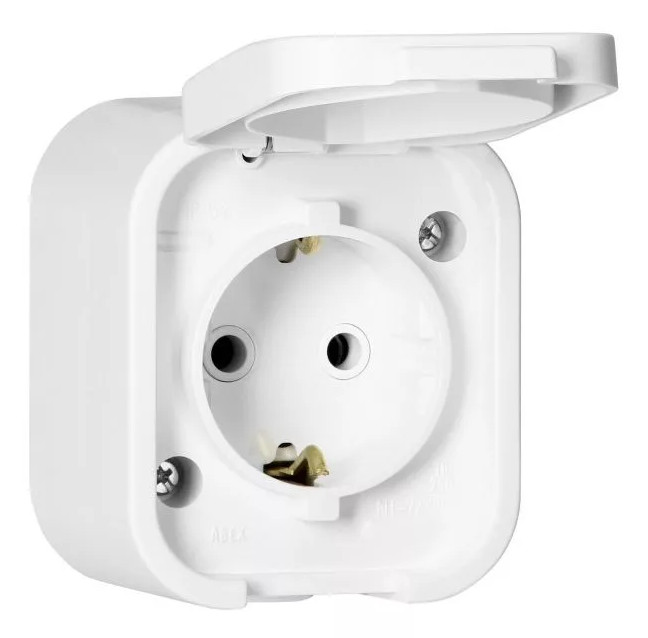 Hálózati földelt konnektor aljzat, 230V AC, 16A, falon kívüli kivitel.