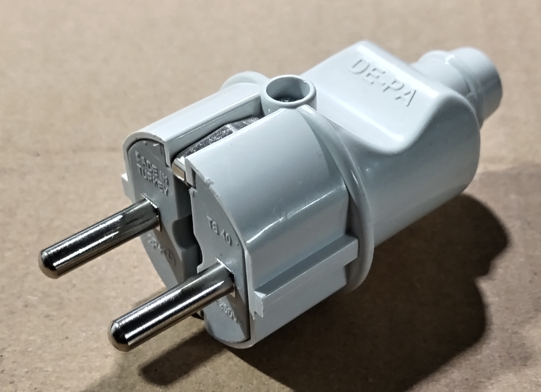 Hálózati földelt konnektor dugó, 250V AC, 16A.