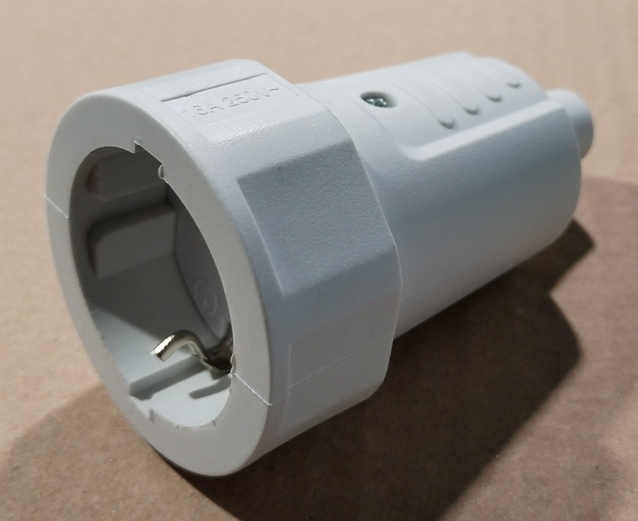 3 pólusú (földelt) hálózati konnektor lengő aljzat, 230V AC, 16A, csavaros kivitel.