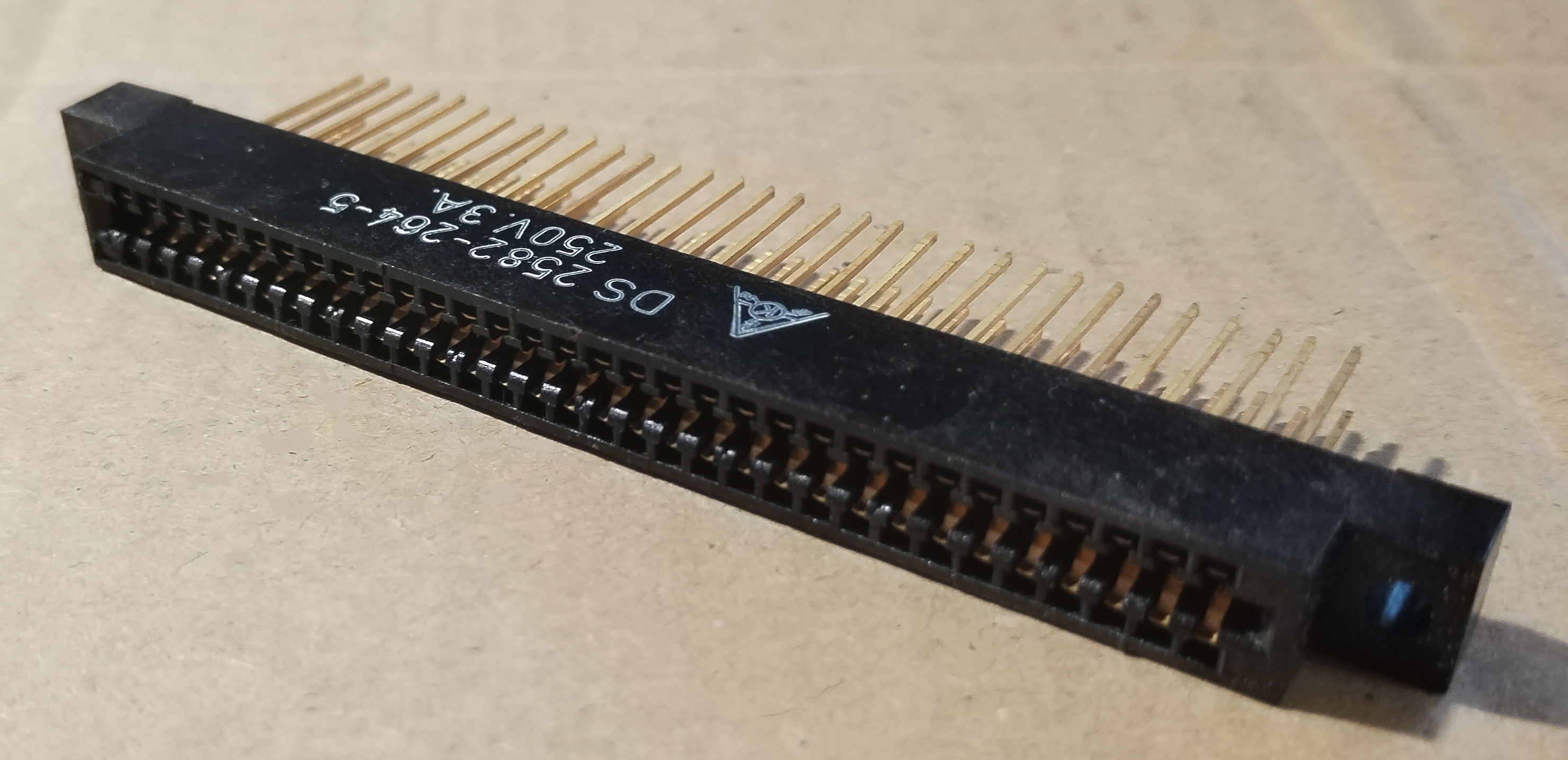 Élcsatlakozó, aranyozott érintkezők, 2x32 pólus, 250V, 3A, lábtávolság 2,54mm.