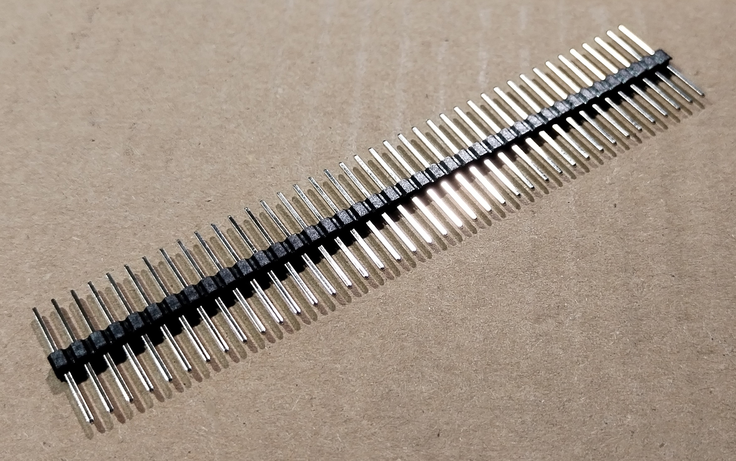 Tüskesor, 1x40, 2,54mm, 180°, tüskehossz 2x9mm (mindkét irányban hosszú), aranyozott, nyákba ültethető kivitel.