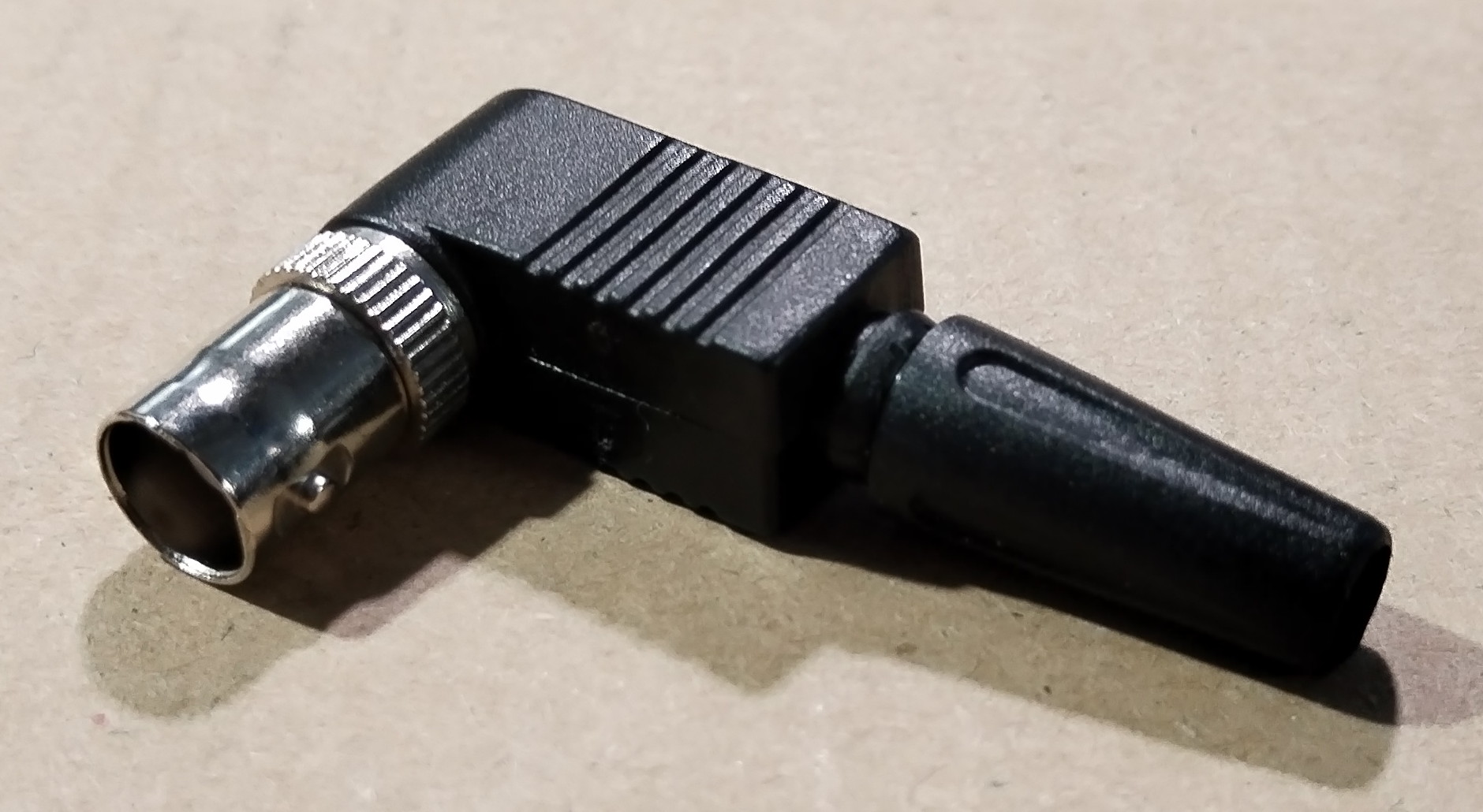 BNC lengő aljzat, RG-58 kábelre, 50R, forrasztható kivitel, 90°.