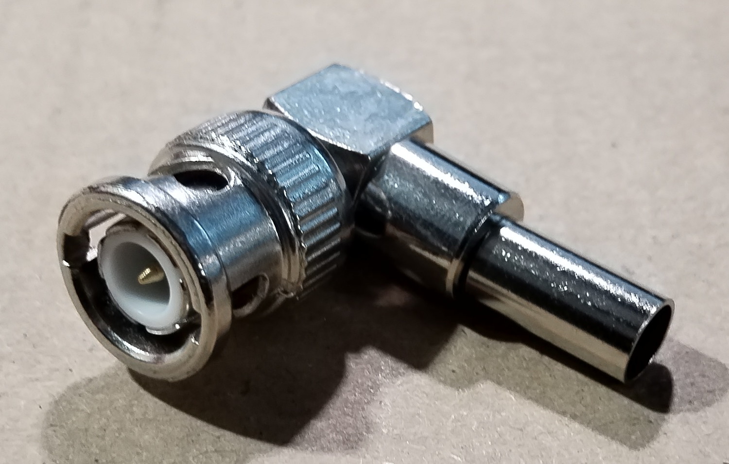 BNC dugó, RG-58 kábelre, 50R, krimpelhető kivitel, 90°.