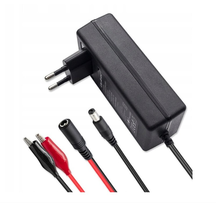 Akku töltő, 220-240V AC/6-12V DC, 1,5A, max. 12VA, 6/12V zselés, AGM, savas AGM, savas-ólom, 2A, 24W, 85% (max. 20Ah -ig), töltési mód automatikus, 2 lépéses töltési mód (CC, CV), automatikus kikapcsolás, piros/zöld led visszajelzéssel, fordított polaritás, túlfeszültség, túltöltés védelem, 2 pólusú földeletlen AC csatlakozó, DC dugó/csipeszes rögzítés.