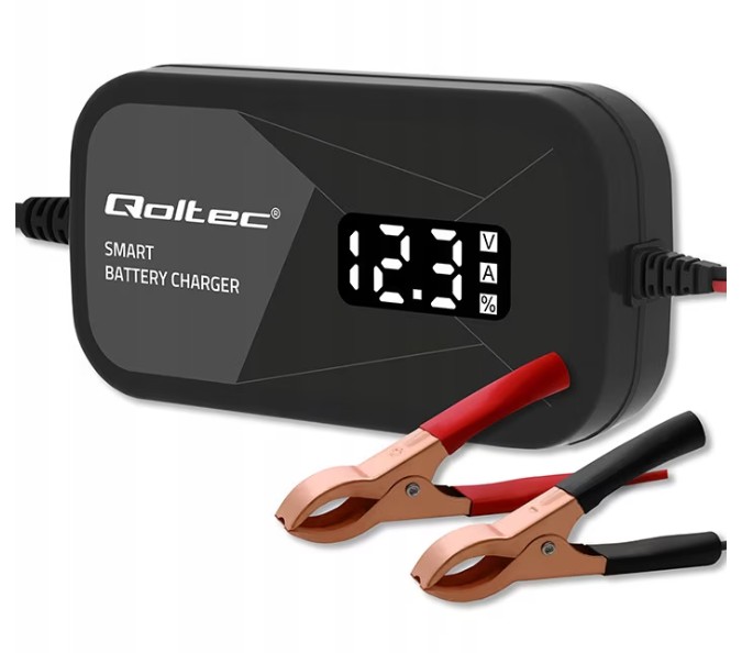 Akku töltő, 220-240V AC/14,8V DC, 2A, 29,6VA, 12V zselés, AGM, savas AGM, savas-ólom, kalcium akkumulátorokhoz, 2A, 24W, 85% (max. 20Ah -ig), 5 féle töltési mód automatikus kiválasztás (STD, MOTO, WET, AGM, REPAIR), 3 lépéses töltési mód (CC, CV, float), automatikus kikapcsolás, led visszajelzéssel, fordított polaritás, túlfeszültség, túltöltés védelem, 2 pólusú földeletlen AC csatlakozó, csipeszes rögzítés.