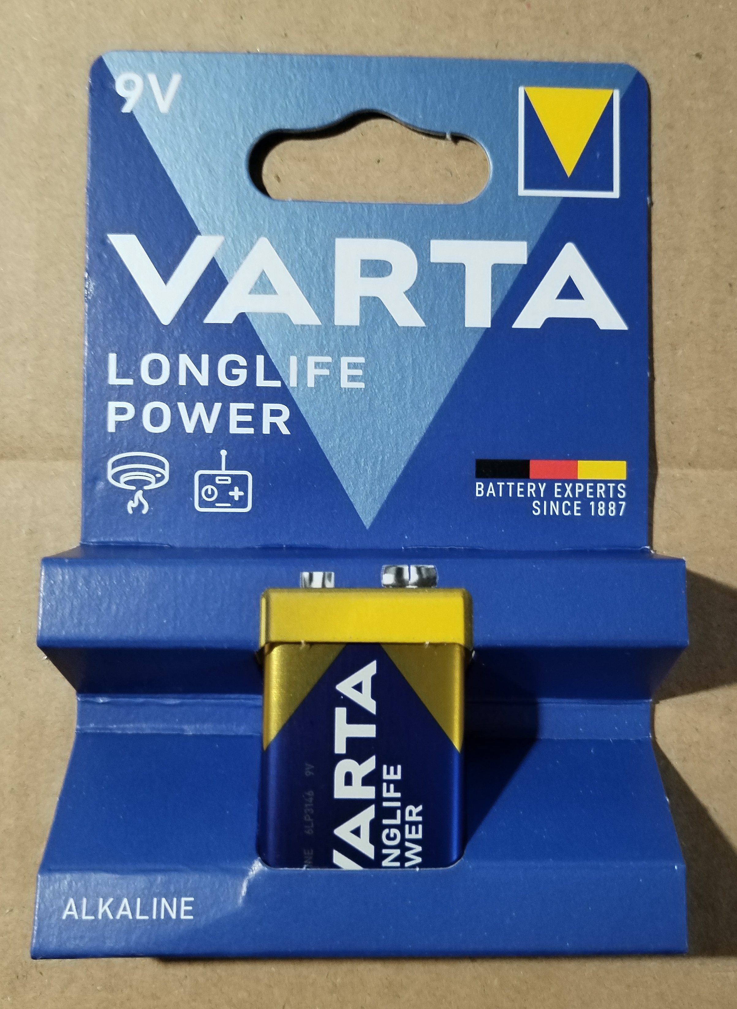 Alkáli elem (6LR61), 9V, 17,5x26,5x48,5mm.