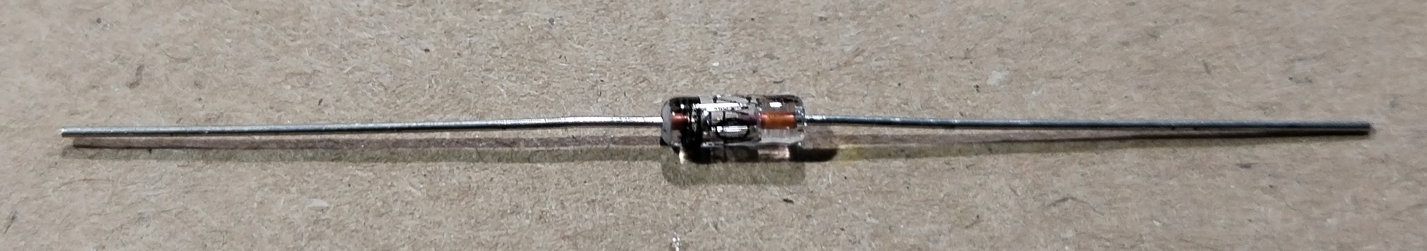 AAZ10 germánium dióda, 25V, 10mA, furatba forrasztható kivitel.