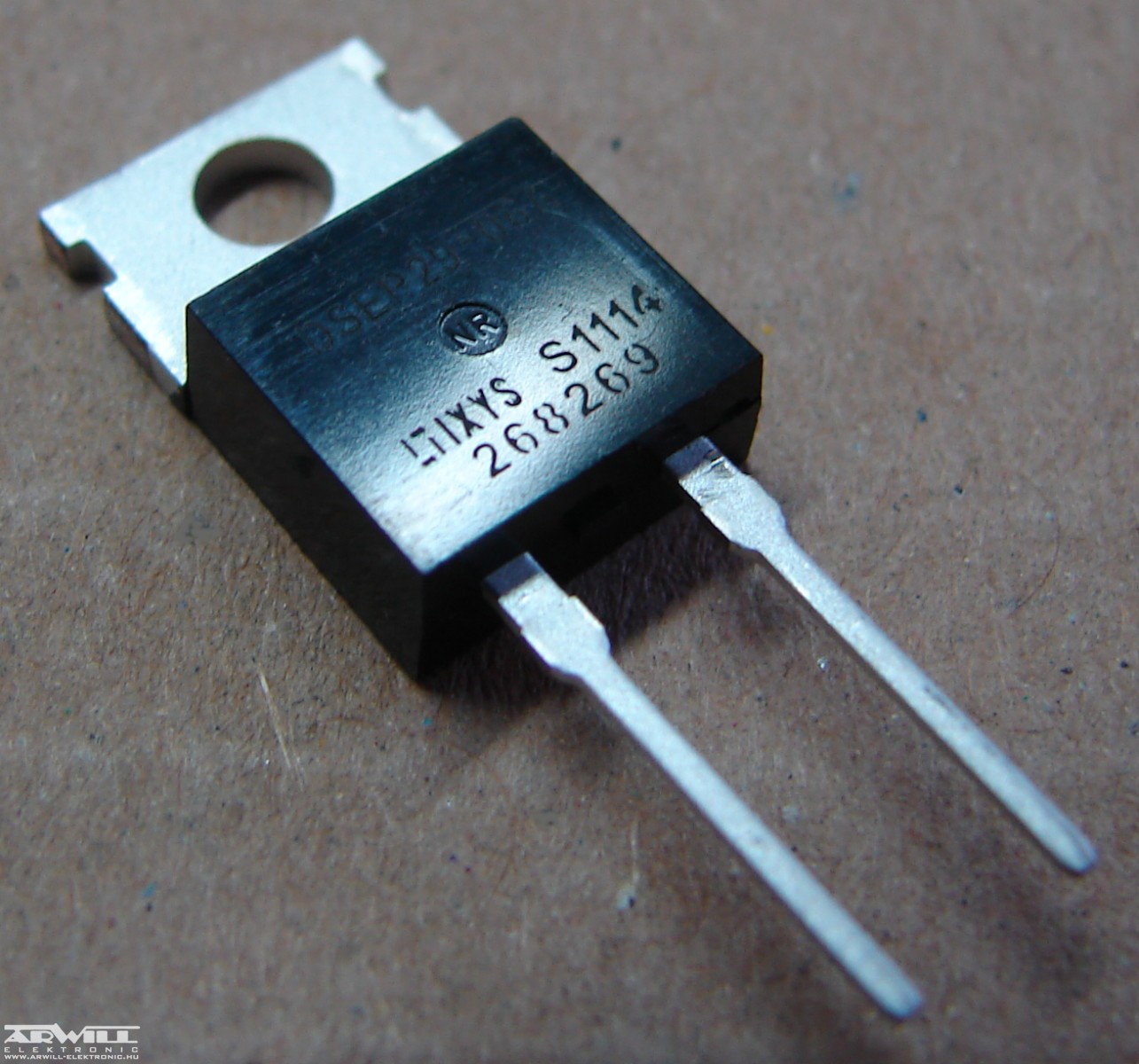 DSEP29-06A ultragyors dióda, 600V, 30A, 35ns, furatba forrasztható kivitel, TO-220 tokozás.