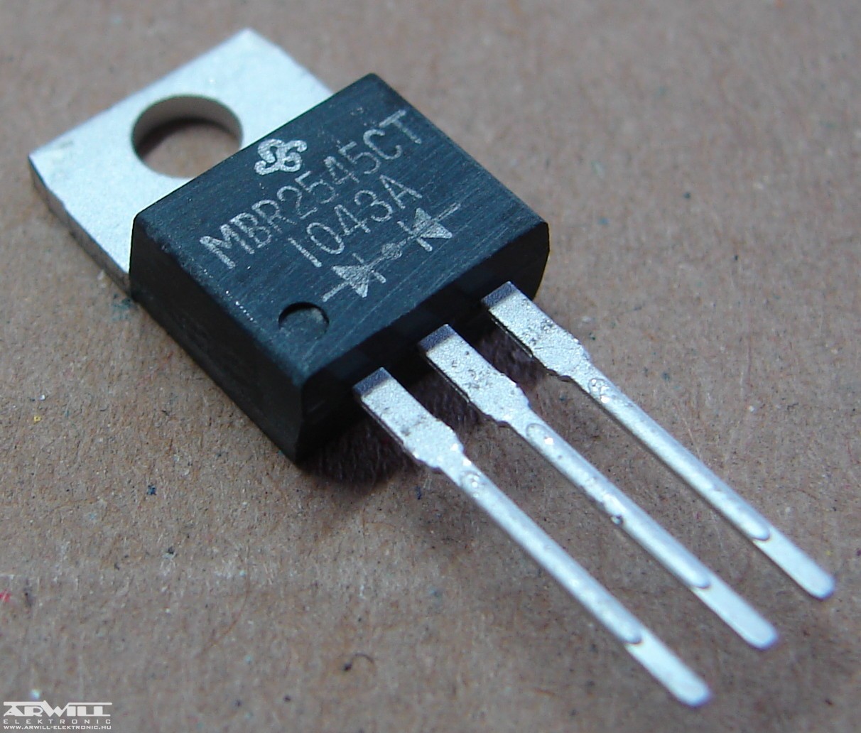MBR2545CT schottky dióda, 45V, 30A, furatba forrasztható kivitel, TO-220 tokozás.