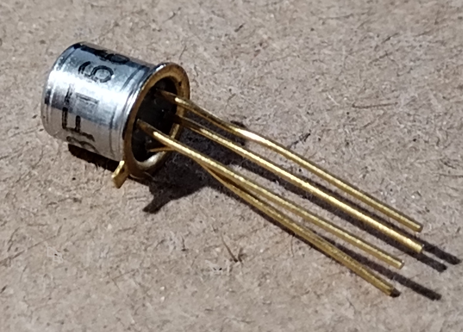 NPN extra alacsony zajú RF tranzisztor, 15V, 30mA, 200mW, 3,8Ghz, TO-72 tokozás.