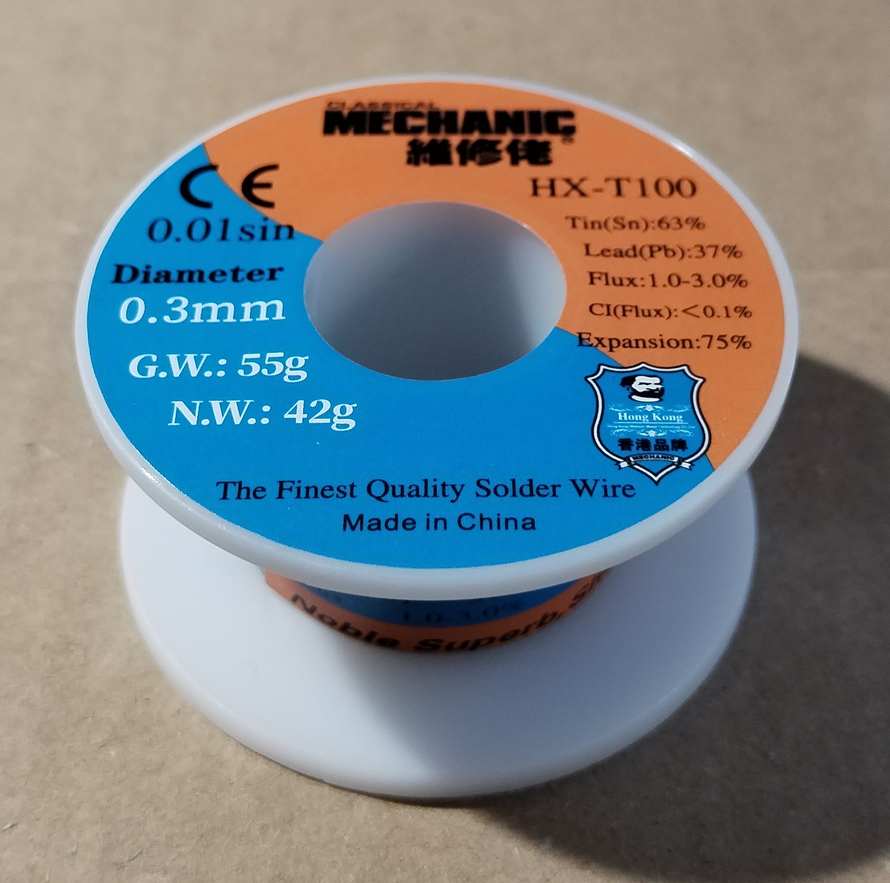 Forrasztó ón, 0,3mm, 55gr, 63% Sn, 37% Pb, folyasztószer.