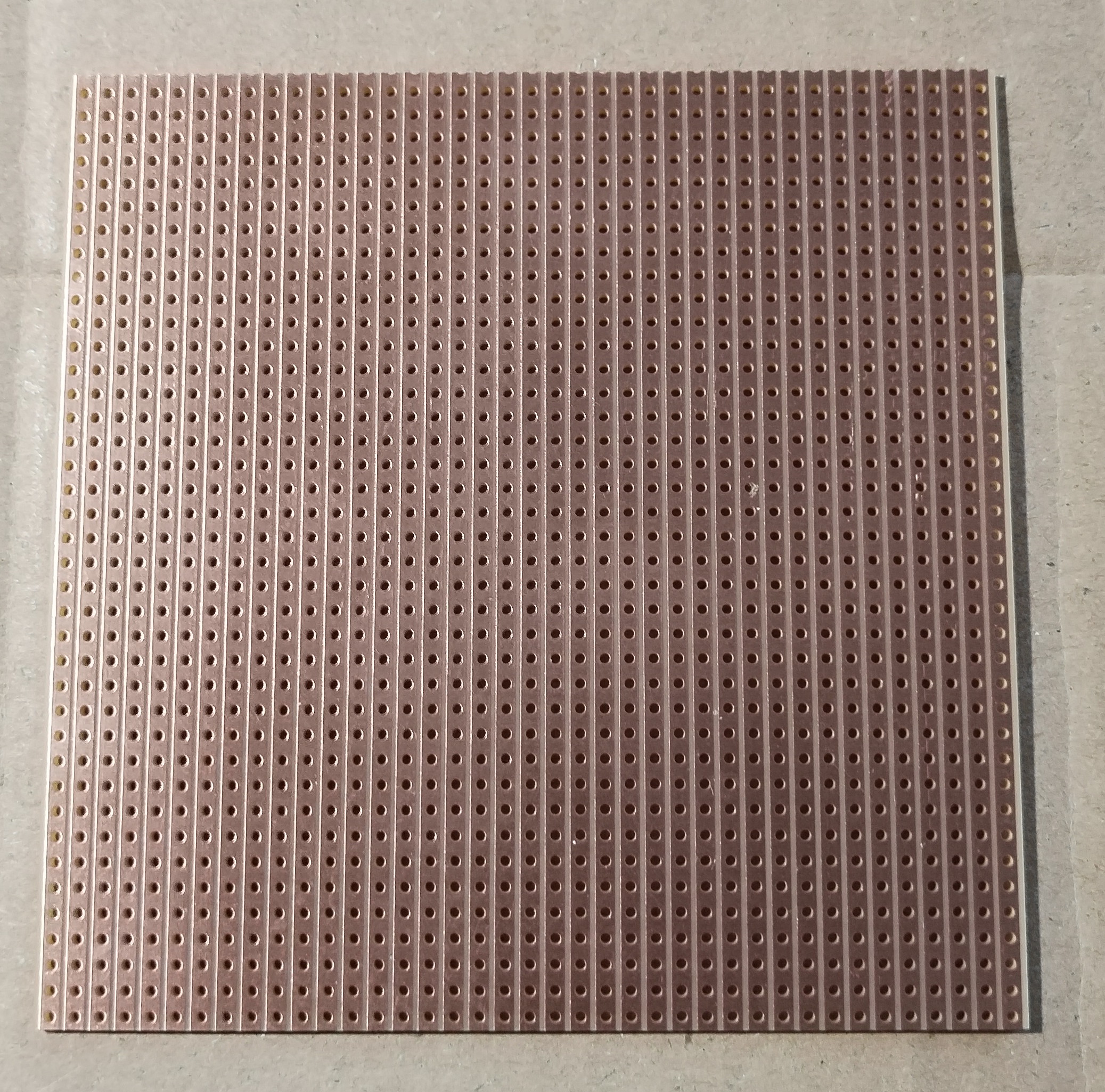 Réz fóliával ellátott, bakelit alapú próbanyák lemez, tesztáramkörök készítéséhez, egybefüggő sávok, vastagság 1,5mm, 1 oldalon fólírozott (1x35um), 100x100mm.