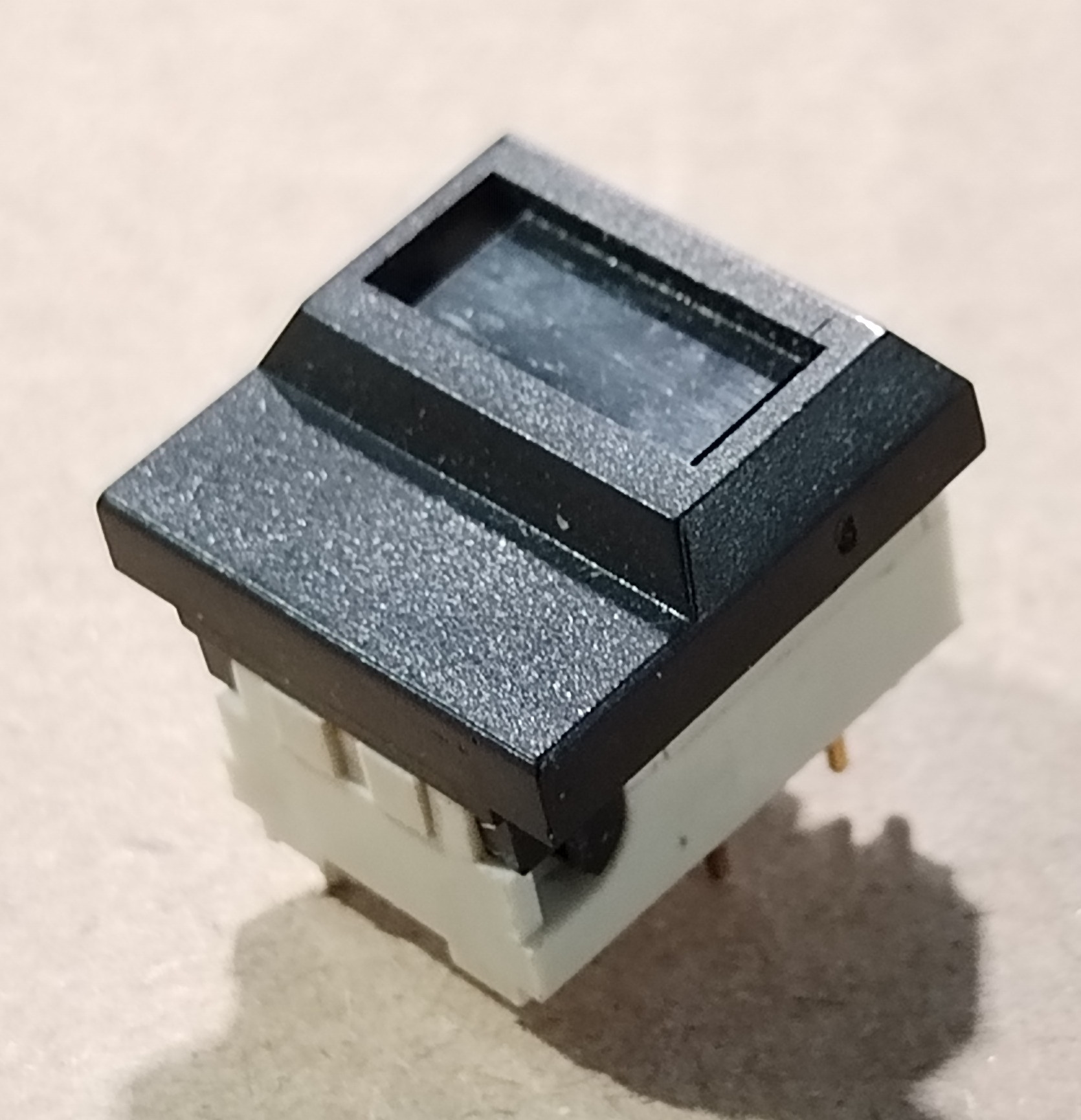 Digitast tasztatúra nyomógomb, 24V DC, 10mA, 1 záró áramkör, 2 állás, méret 17,5x12,3mm, nyákba forrasztható kivitel, lábtávolság 7,62/5mm.