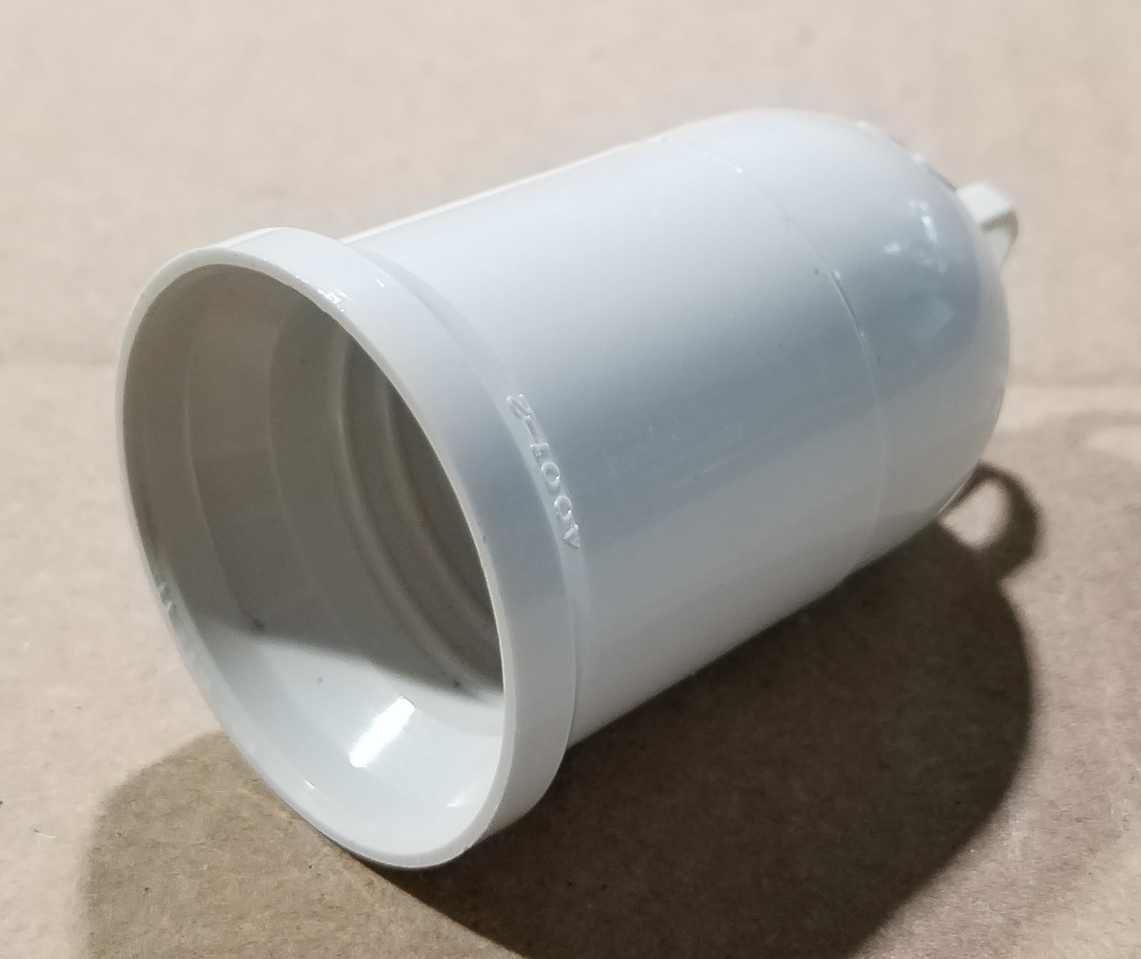 E-27 műanyag izzó foglalat, csavaros bekötés.