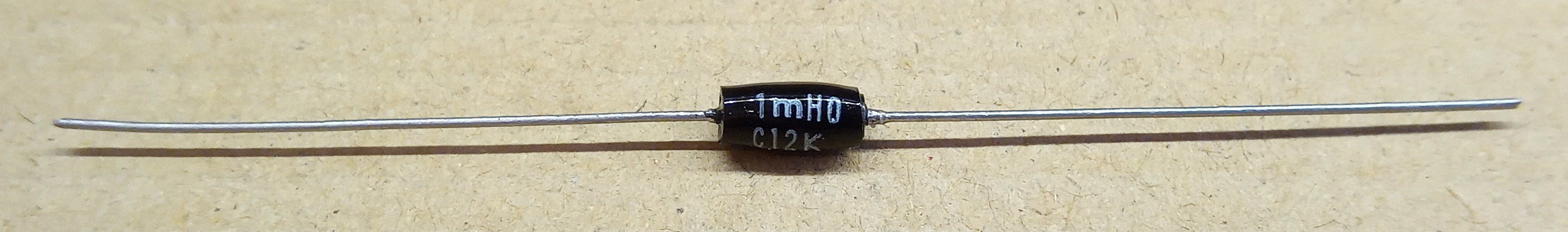 Fojtótekercs, 1mH, ~0,1A, 37R, d=4,3mm, hosszúság 9mm.