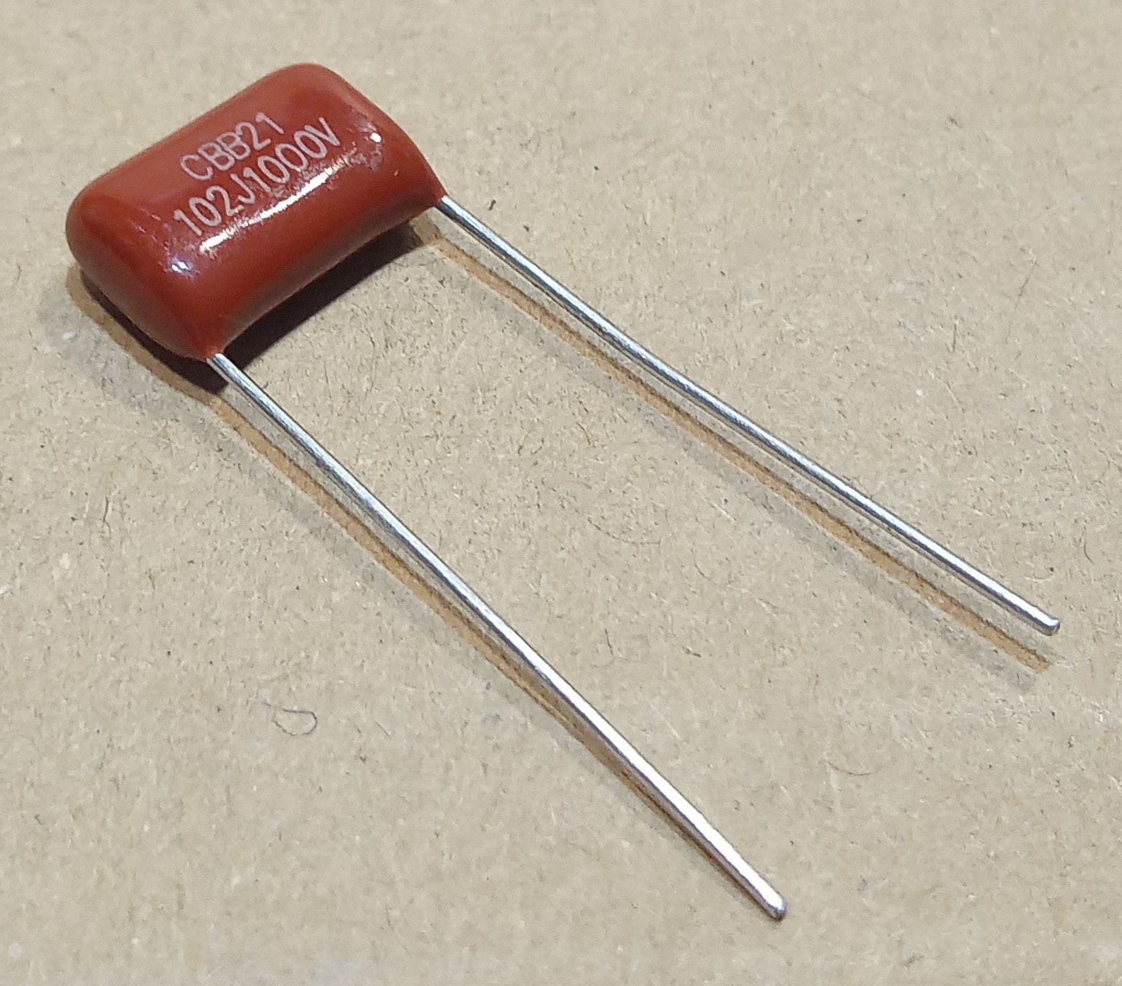 Fólia kondenzátor, 1nF, 1000V, 5%, MKP, CBB21, lábtávolság 10mm.