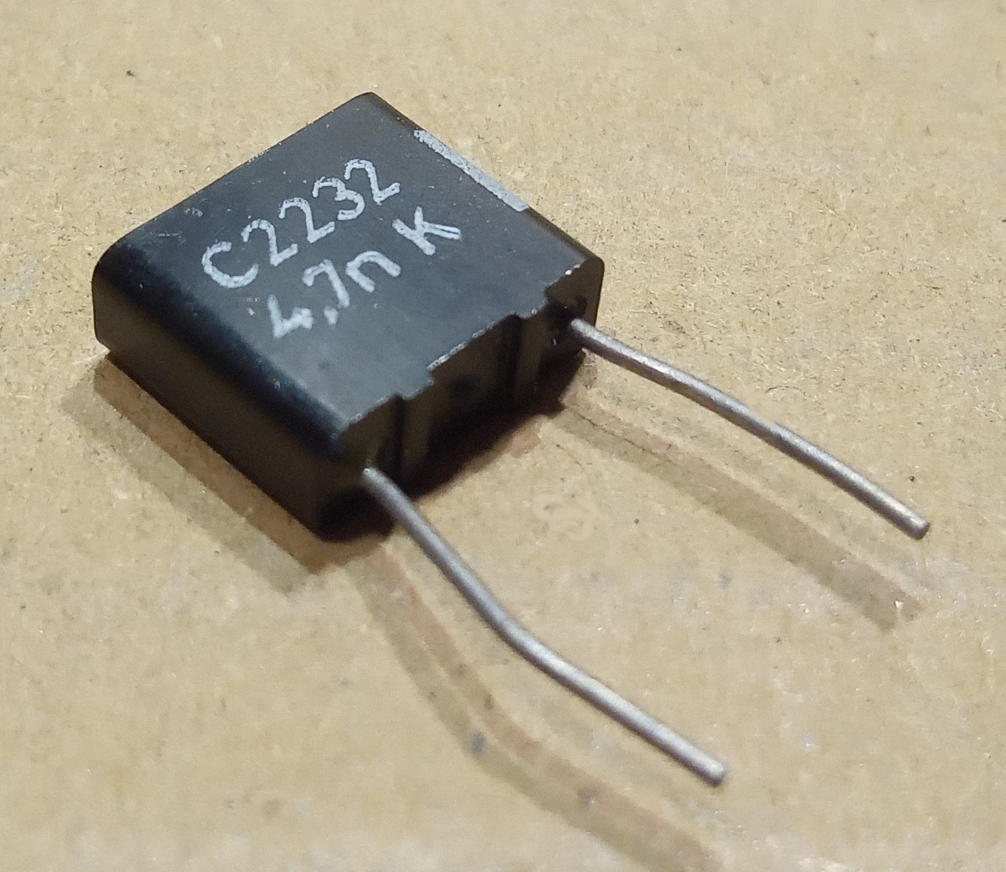 Fólia kondenzátor, 4,7nF, 63V, 10%, MKT, C2232, lábtávolság 7,5mm.
