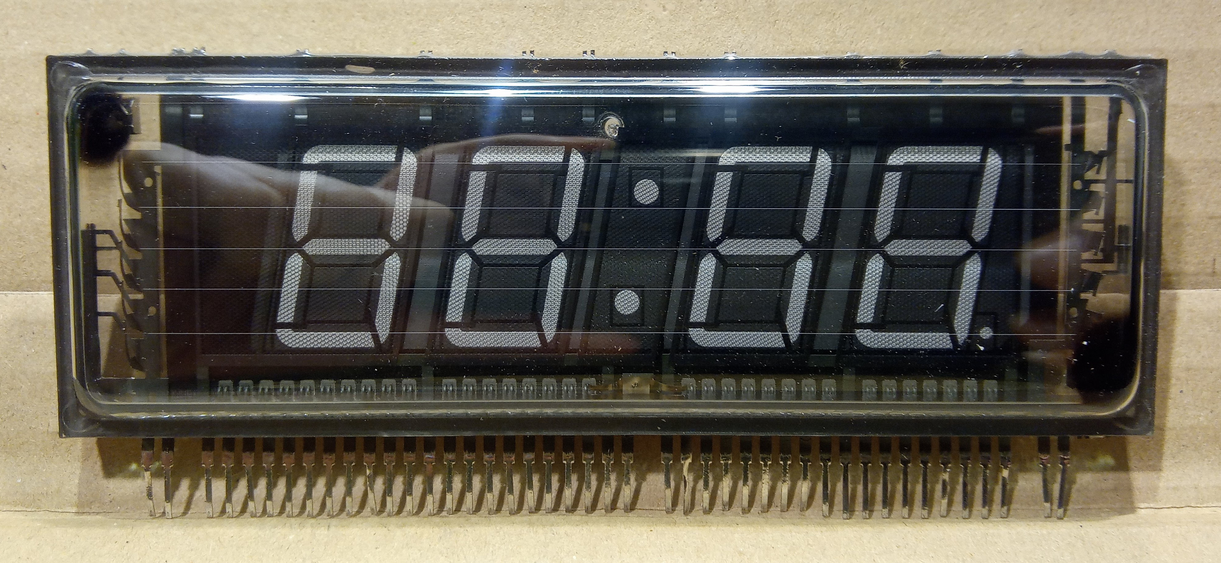 4-JT-56, vacuum fulorescent (óra) kijelző modul, fűtés 3,5-4V AC, anód feszültség 26-30V DC, rács feszültség 26-30V DC, 4 digit, digit méret 25,5mm x 14mm, kijelző méret 138mm x 49mm/59mm, nyákba ültethető kivitel. A kijelző ára a meghajtó IC-t nem tartalmazza.