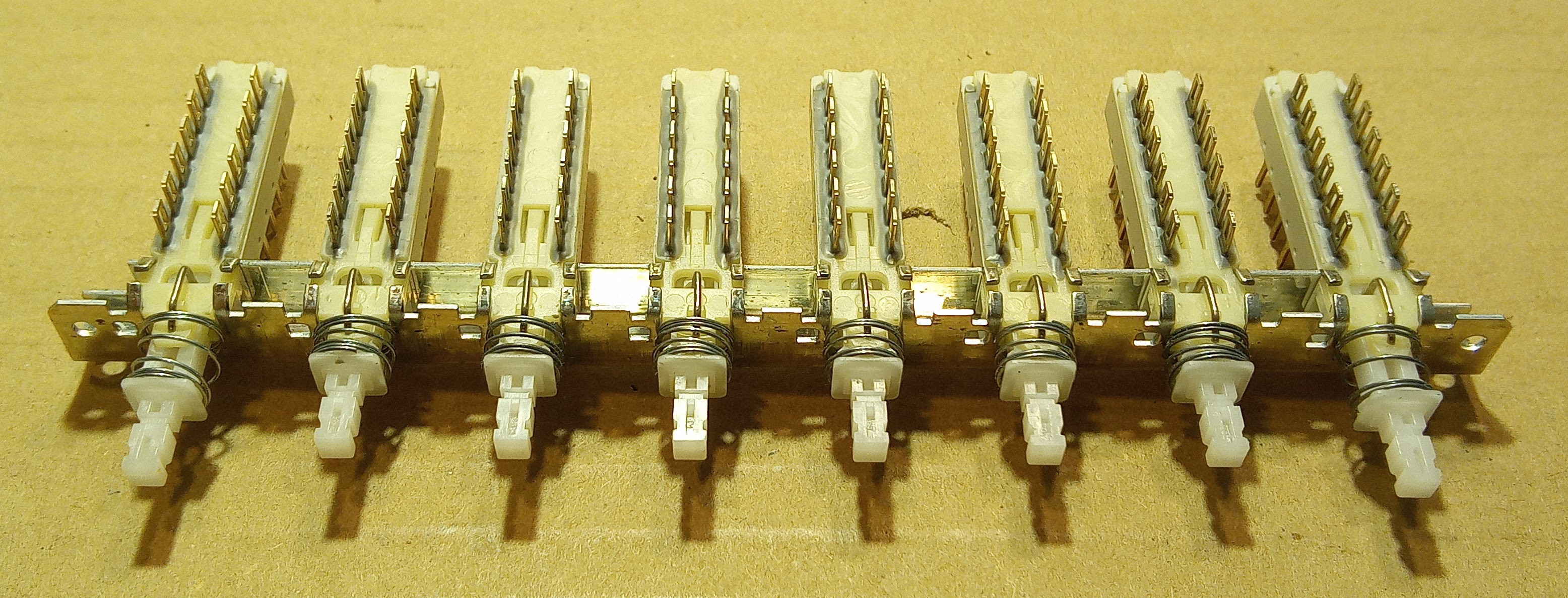 8 tagú nyomókapcsoló sor, 8db 2 állás, 4 váltó (morze) kapcsoló.