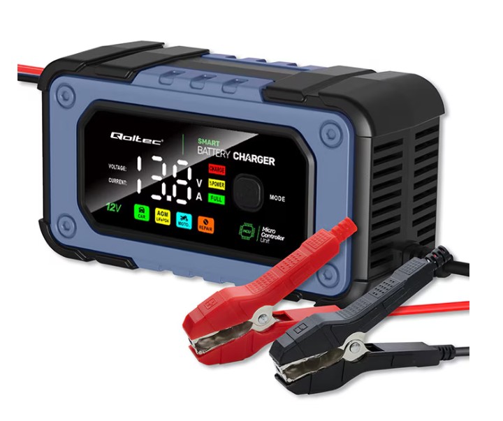 Akku töltő, 220-240V AC/14,8V DC, 7A, 103,6VA, 12V zselés, AGM, savas AGM, savas-ólom, kalcium akkumulátorokhoz, 7A, 84W, 85% (max. 20Ah -ig), 4 féle töltési mód (CAR, AGM/LIFEPO4, MOTO, REPAIR), 3 lépéses töltési mód (CC, CV, float), automatikus kikapcsolás, led visszajelzéssel, fordított polaritás, túlfeszültség, túltöltés védelem, 2 pólusú földeletlen AC csatlakozó, csipeszes rögzítés.