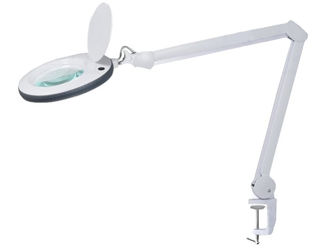 Nagyítós asztalra rögzíthető lámpa, 230V, 8W, 800lm, 5dpt (x2,25) nagyítás, Ø120mm, Ø4,72", 80db 6500K LED világítás, állítható kar, cserélhető lencse (3x, 8x lencse rendelhető).