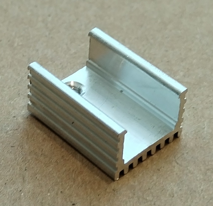 Alumínium hűtőlemez, szélesség/magasság/mélység 15x20x10mm, TO-220 tokozásokhoz.
