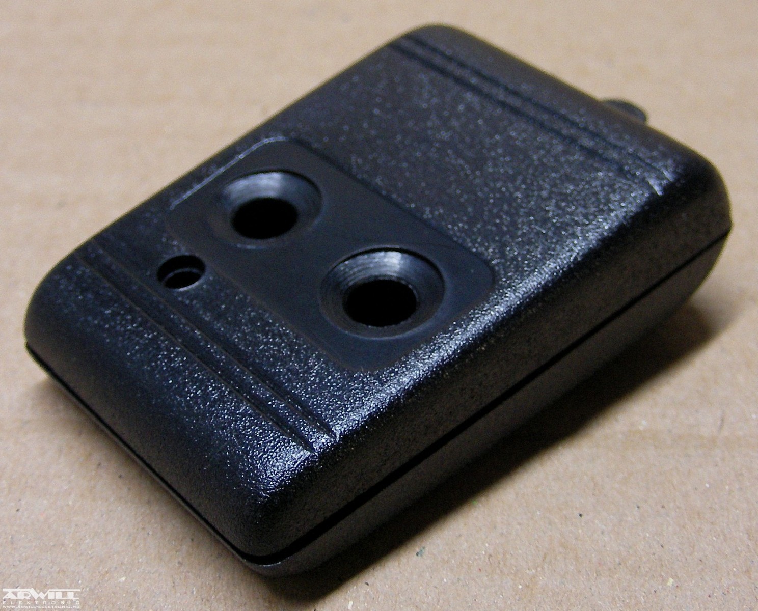 Műanyag távirányító doboz, szélesség 56mm, mélység 36mm, magasság 15mm, csavaros szerelés, nyomógombok.