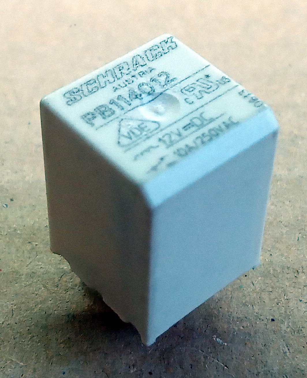 PB114012 jelfogó (relé), tekercs feszültség 12V DC, kapcsolható feszültség 250V AC, kapcsolható áram 10A, 1db záró érintkező.
