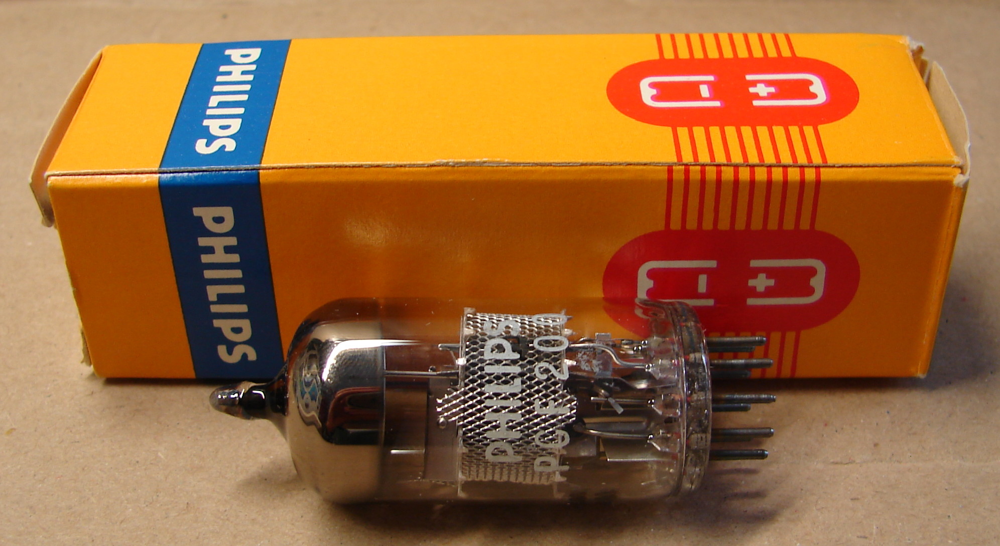 PCF200 trióda/pentóda elektroncső, TV vevőegységekbe, AGC erősítő, szinkron szeparátor, zaj detektor, impulzus erősítő, hang és video erősítő, 10 pólusú dekal, B10C.