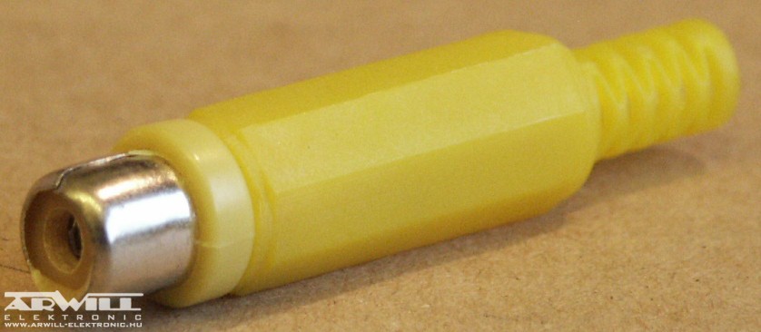 RCA lengő aljzat, műanyag, forrasztható kivitel, sárga.