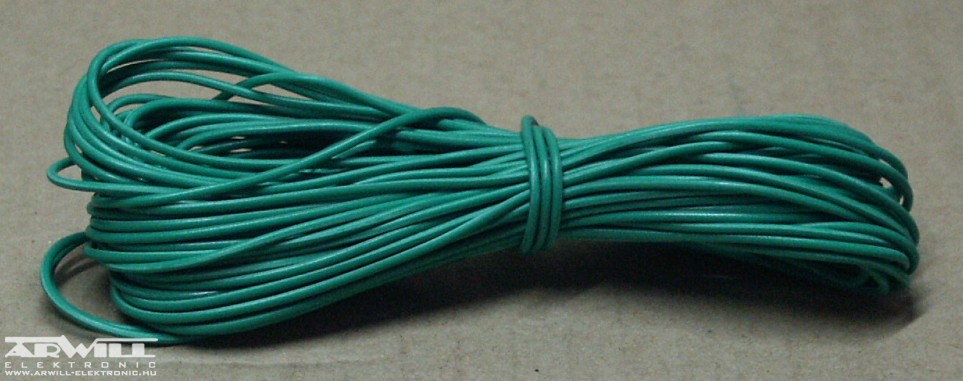 Sodrott bekötő vezeték, 1x0,14mm2, 300V, zöld, 10m/tekercs.