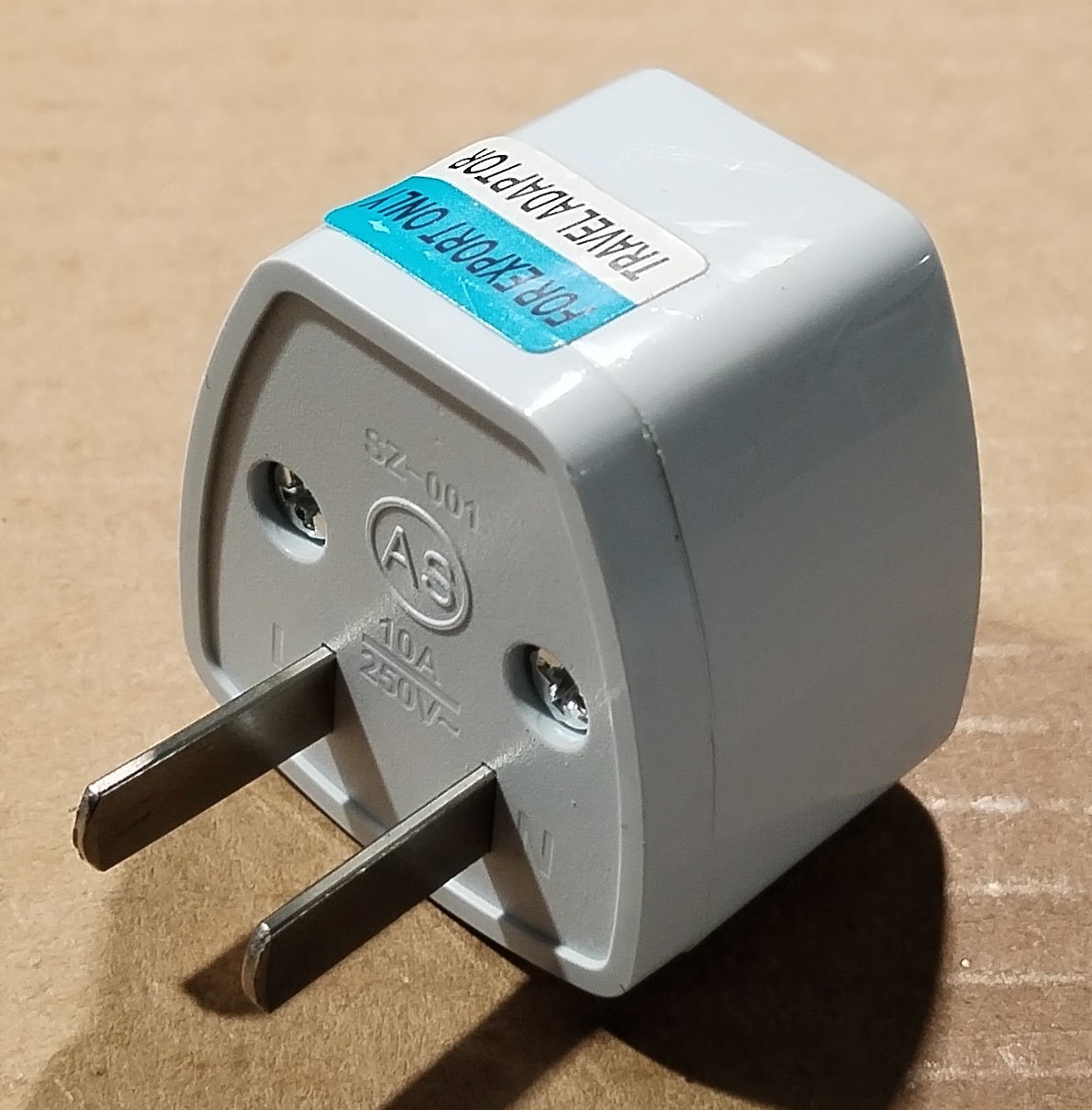 Utazó adapter Amerikába, magyar készülékekhez. UK dugó / univerzális aljzat, földeletlen.