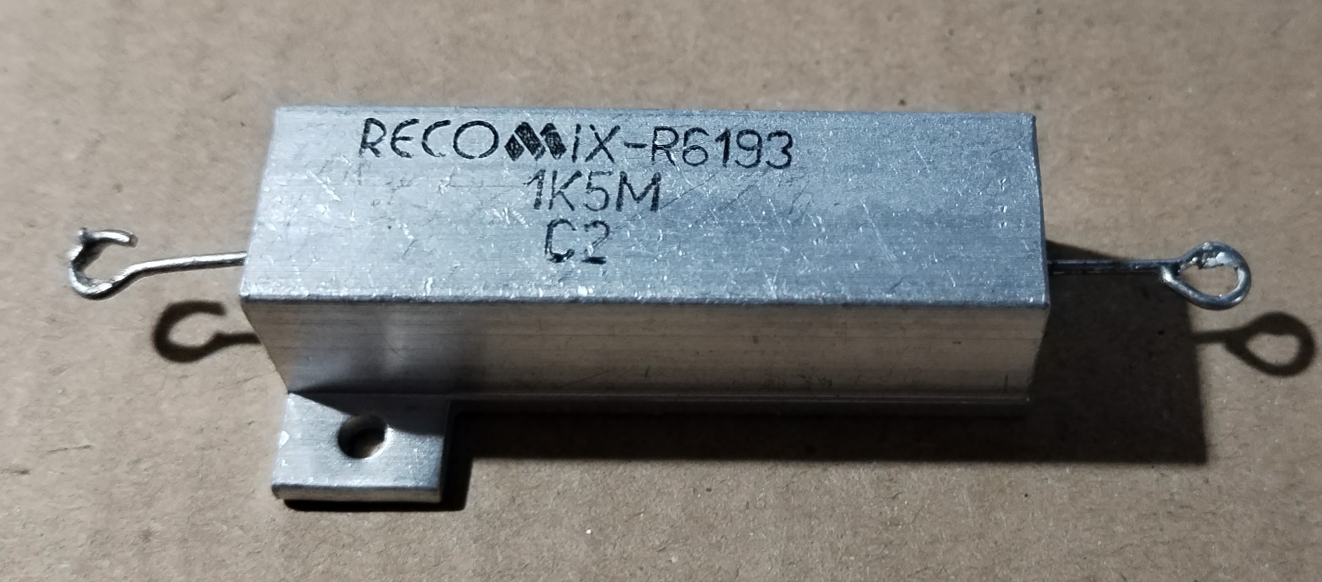 Fém házas huzal ellenállás, 1,5k, 10/40W, 20%, 50x15x15mm.