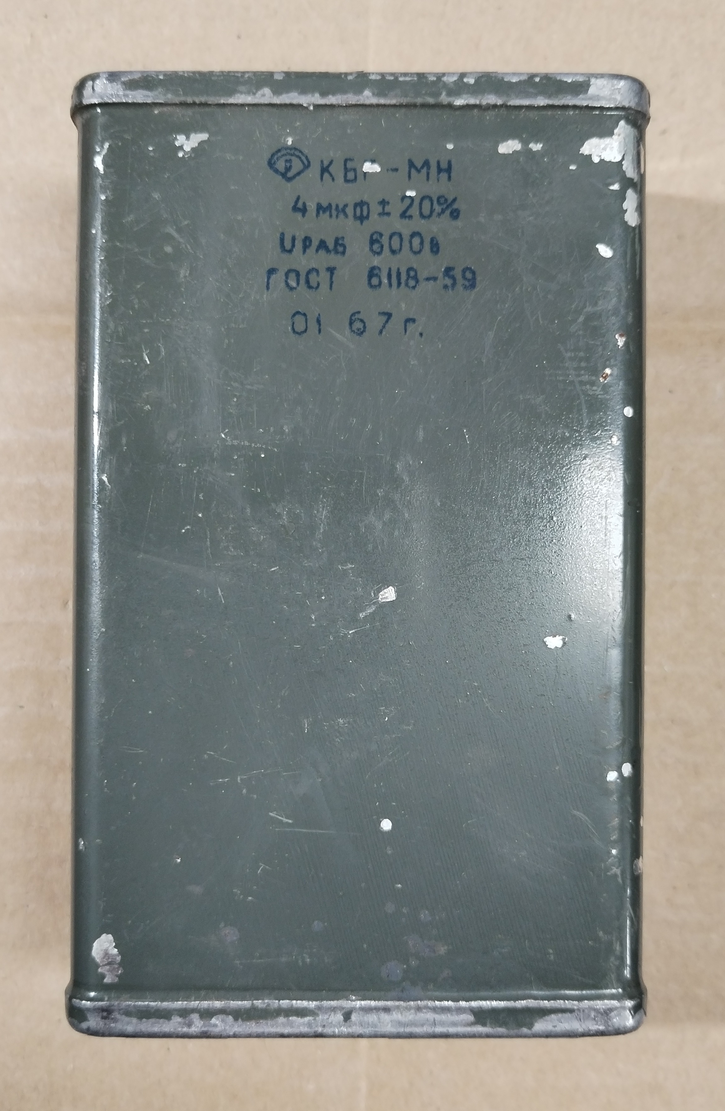 Nagyfeszültségű, fémezett papír, impulzus kondenzátor, 4uF, 600V, 20%, КБГ-МН, forrszemes csatlakozás.