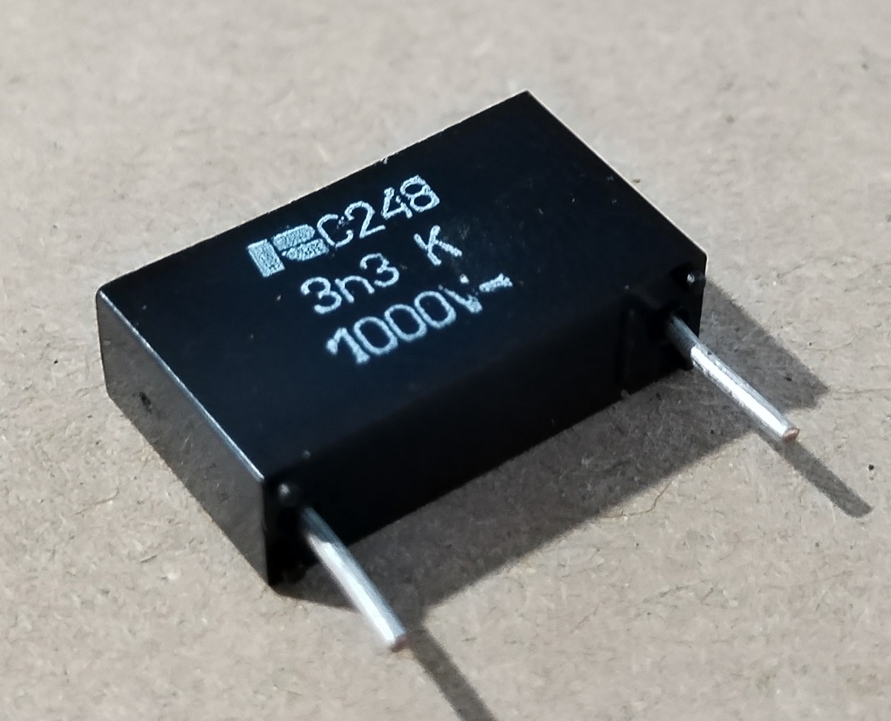 Fólia kondenzátor, 3,3nF, 1000V, 10%, MKP, C248, lábtávolság 15mm.