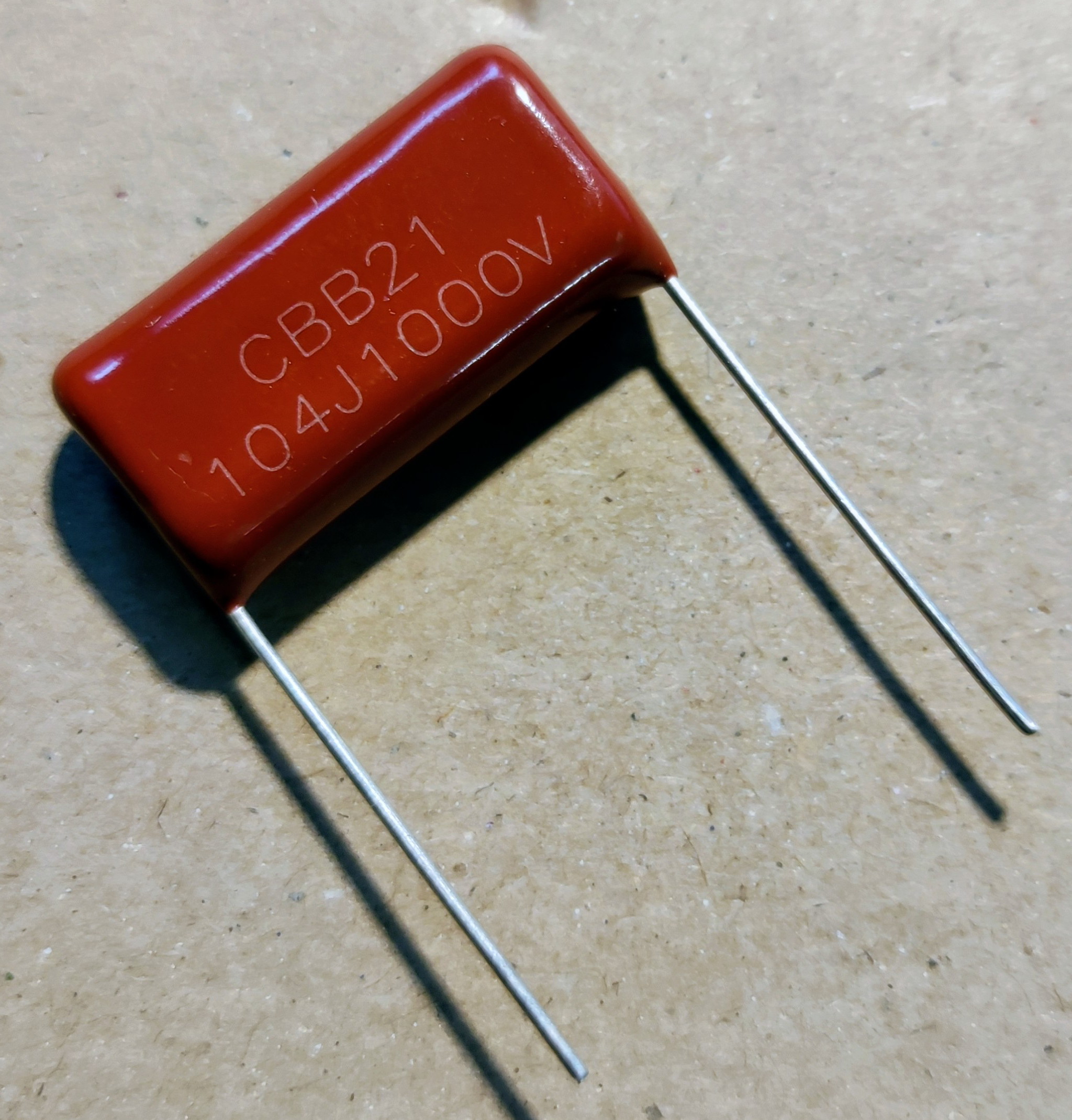 Fólia kondenzátor, 100nF, 1000V, 10%, MKP, CBB21, lábtávolság 25mm.