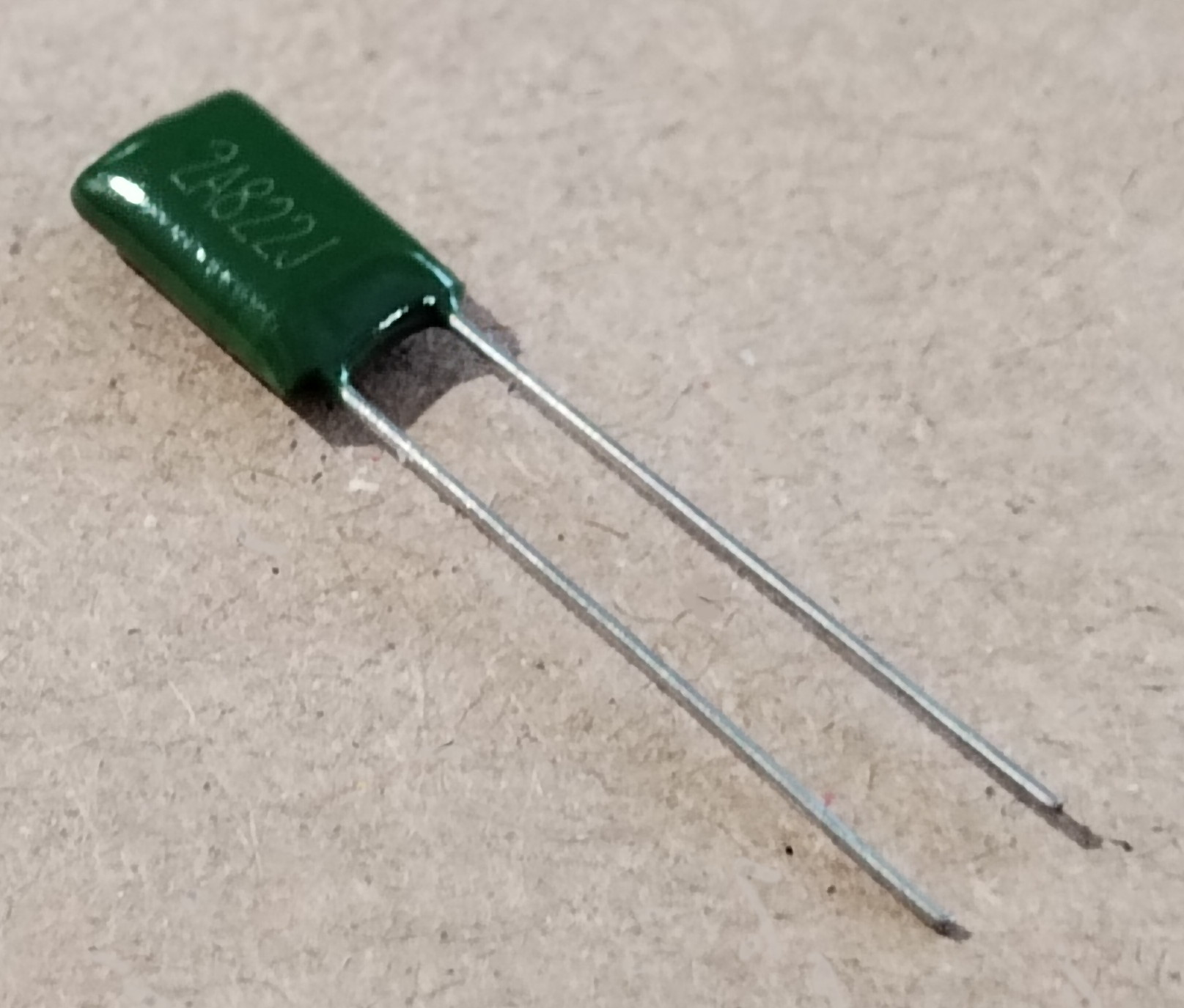 Mylar fólia kondenzátor, 8,2nF, 100V DC, 5%, lábtávolság 5mm.