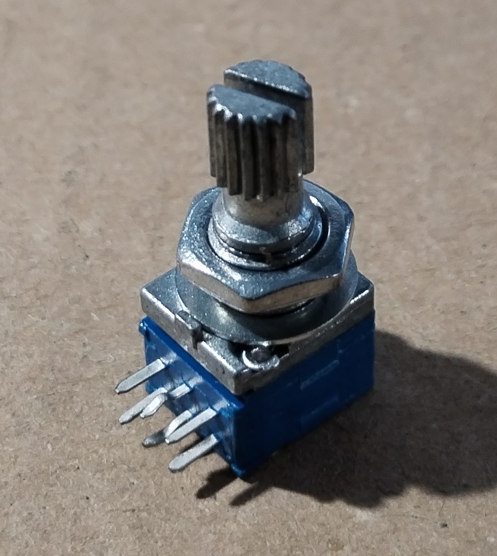 Tengelyes, szénréteg potméter, 2x100k, 25mW, sztereo, logaritmikus, tolerancia 10%, mechanikus forgási szög 300°, tengelyátmérő 6mm, test mérete 10x11,5mm, tengelyhossz 8mm recézett, menet hosszúsága 6mm, furatátmérő 7mm, lábtávolság 2,5mm, max. 20V DC, 150V AC.