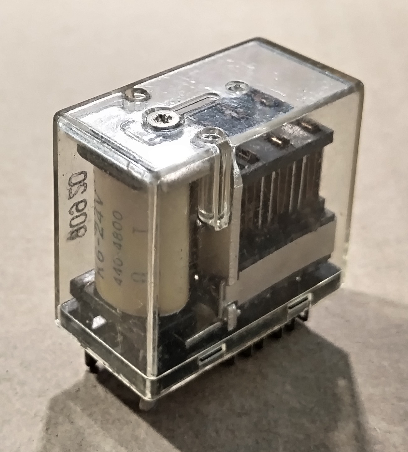 K6-24V jelfogó (relé), tekercs feszültség 24V DC, kapcsolható feszültség ~60V AC, kapcsolható áram ~6x0,5A, 6db váltó (morze) érintkező.