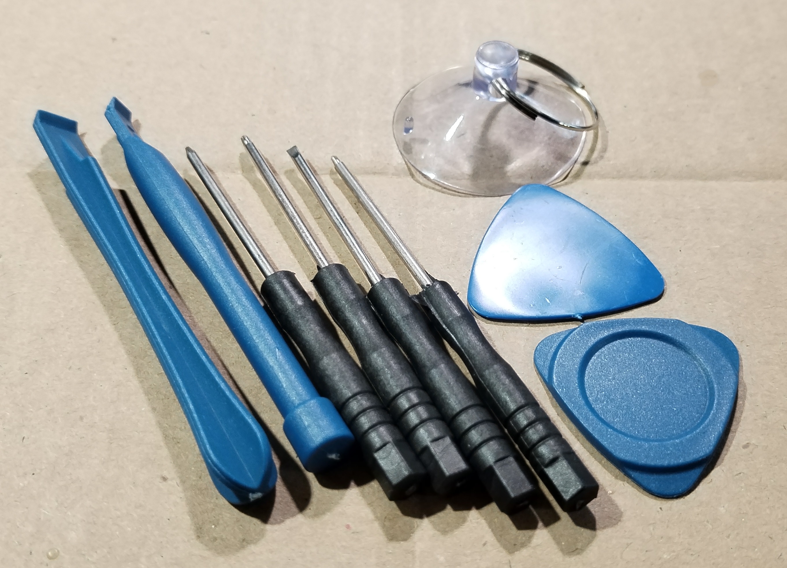 Fedélnyitó készlet pl. mobiltelefon szereléshez, 9db speciális anyagú és kialakítású eszköz.