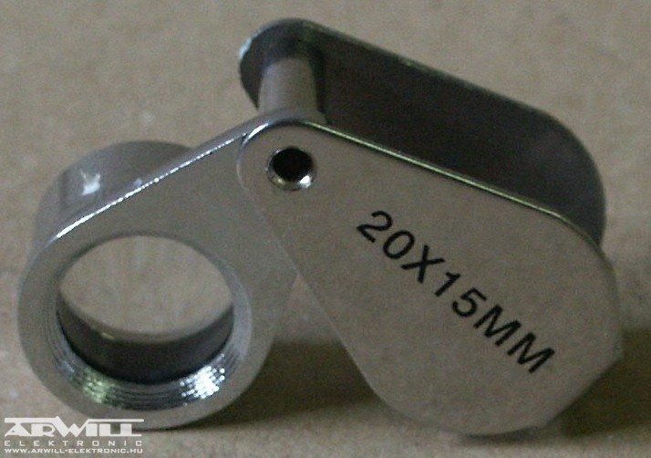 Kézi nagyító, 6x nagyítás, 15mm, fém ház, összecsukható.