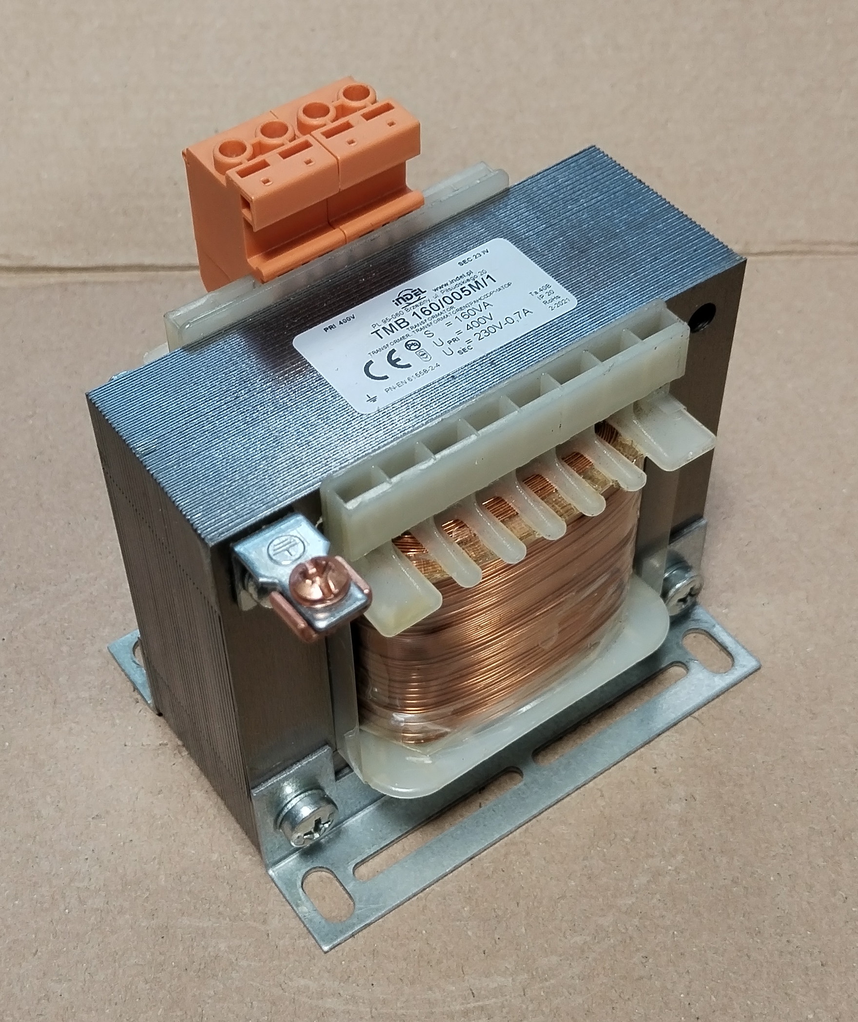 Hálózati transzformátor TMB160, 160VA, 400V/1x230V, sorkapcsos kivezetés.