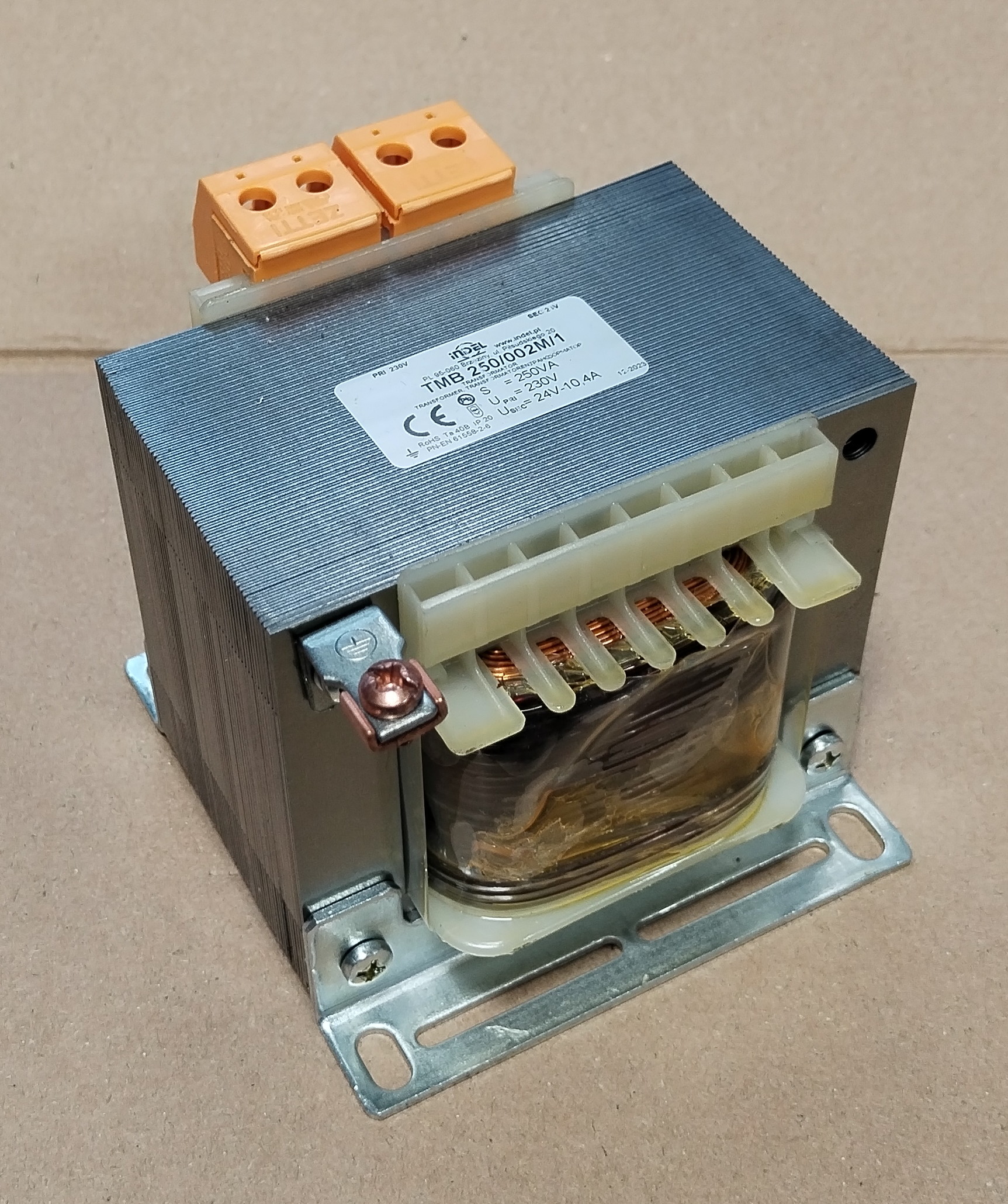 Hálózati transzformátor TMB250, 250VA, 230V/1x24V, sorkapcsos kivezetés.