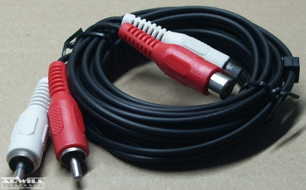 RCA hosszabbító kábel, 2db RCA dugóval, 2db RCA aljzattal, 3,0m.