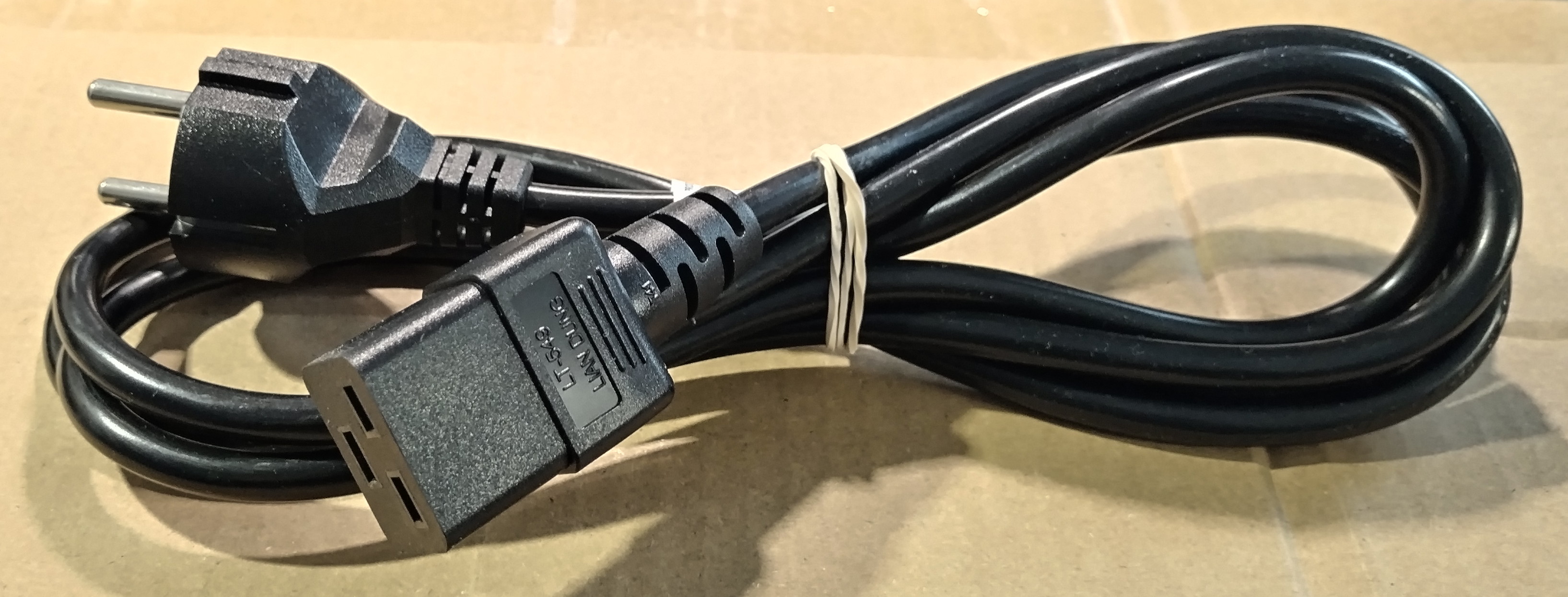 Hálózati kábel, C19, 3x1mm2, földelt hálózati csatlakozóval, 2m.