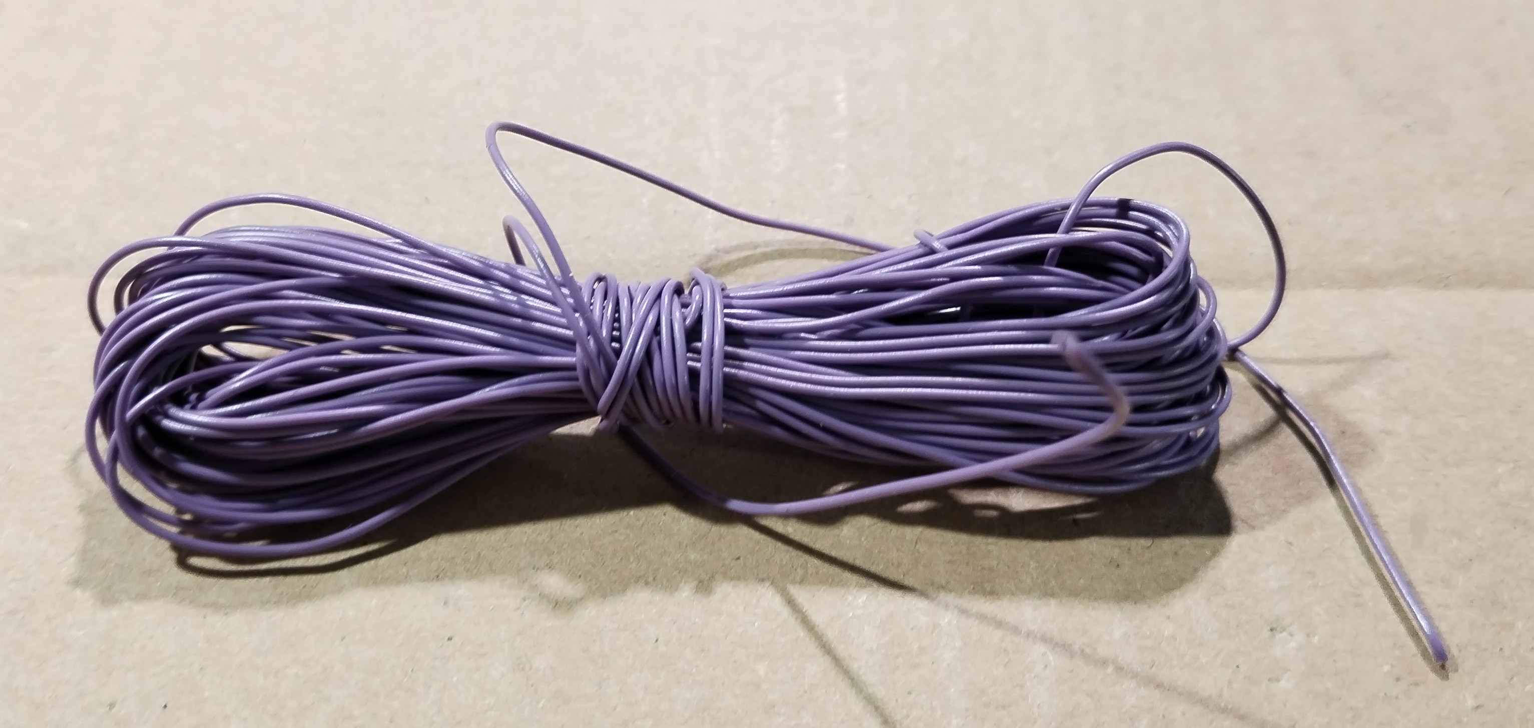 Sodrott bekötő vezeték, 1x0,09mm2, 300V, lila, 10m/tekercs.