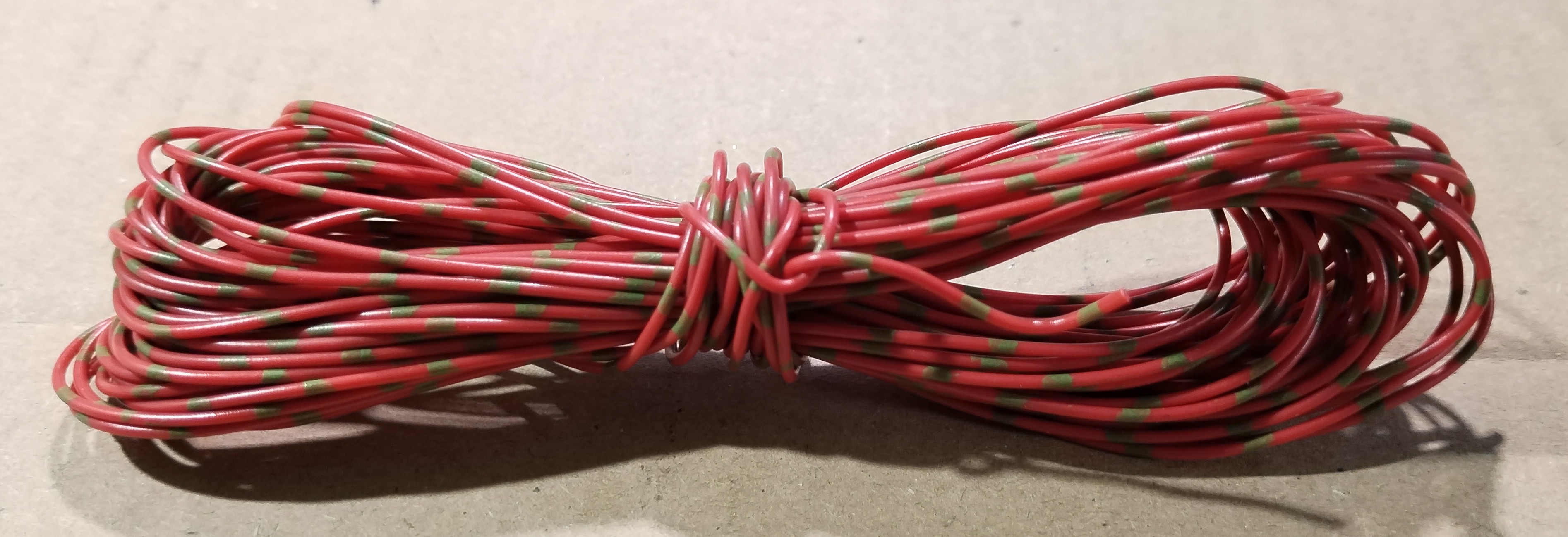 Sodrott bekötő vezeték, 1x0,14mm2, 300V, piros/zöld, 10m/tekercs.